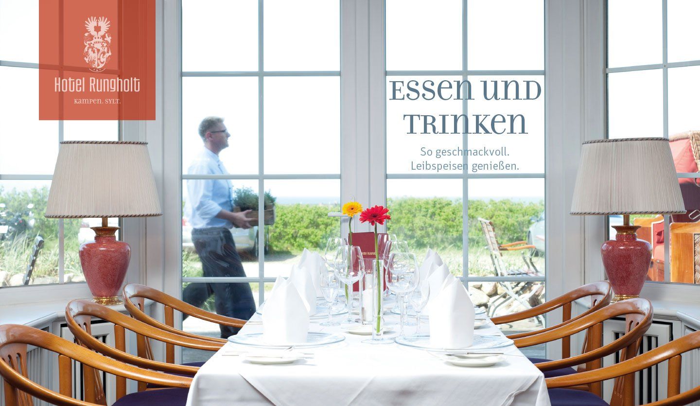 Lassen Sie sich im Hotel Rungholt rundum verwöhnen. Die einmalige Lage in Kampen nahe dem Roten Kliff, mit Blick aufs Meer, machen Ihren Aufenthalt zu einem unvergessenen Erlebnis. Genießen Sie selbst aus den Tagungsräumen diesen wunderbaren Blick auf das Meer und die Dünen.